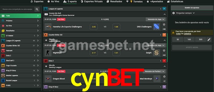 O cynbet oferece uma grande seleção de opções de apostas em e-sports com probabilidades competitivas